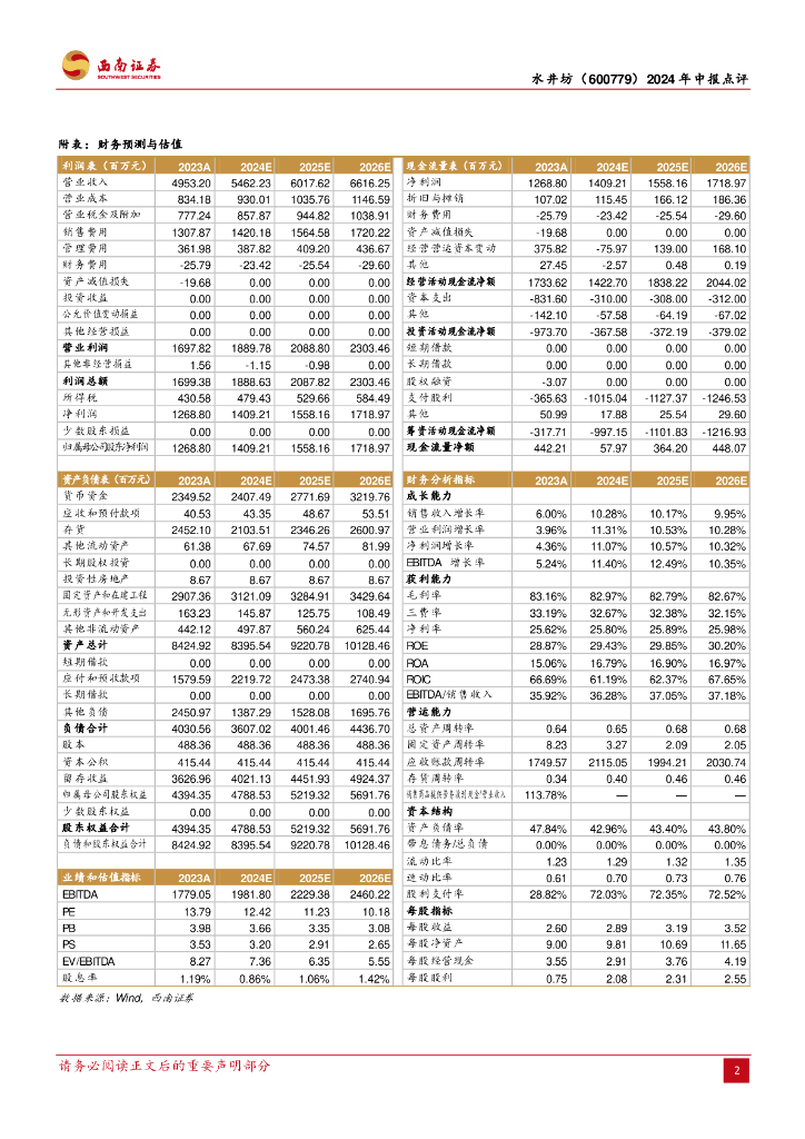 西南证券:水井坊(600779)-24Q2实现稳健增长,臻酿八号势能延续.pdf