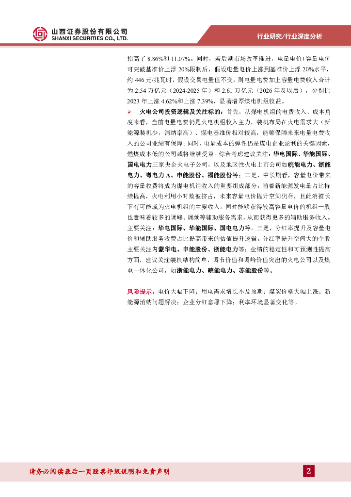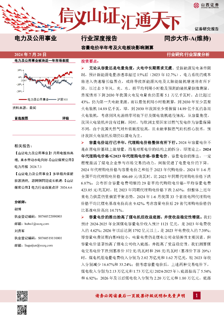 山西证券:电力及公用事业行业深度报告:容量电价半年考及火电板块影响测算.pdf