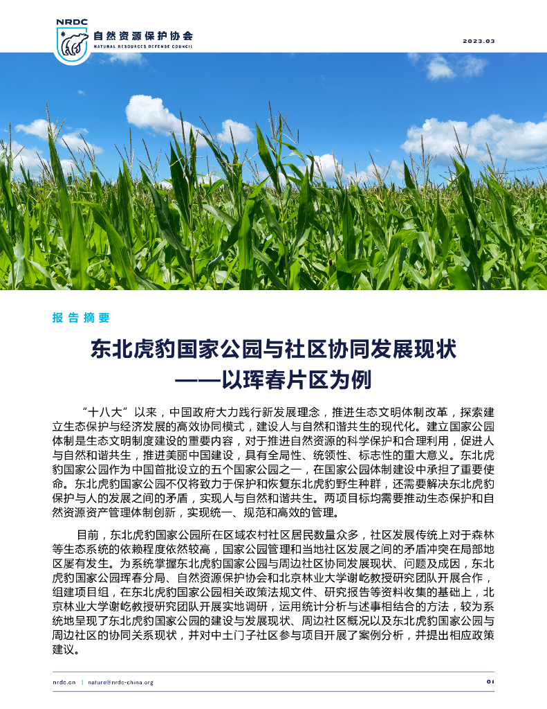 自然资源保护协会:东北虎豹国家公园与社区协同发展现状(报告摘要).pdf