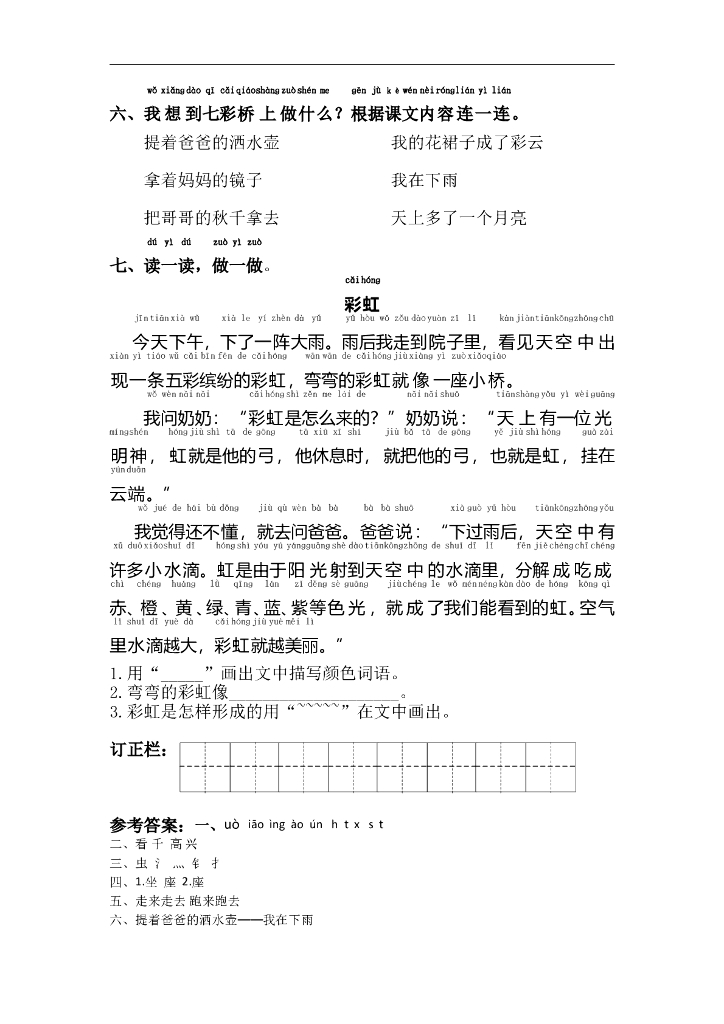 部编版一年级语文下册课课练11.彩虹.doc