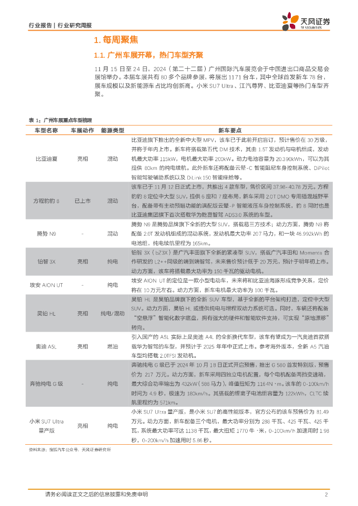 天风证券:汽车行业周报:广州车展开幕,热门车型齐聚.pdf