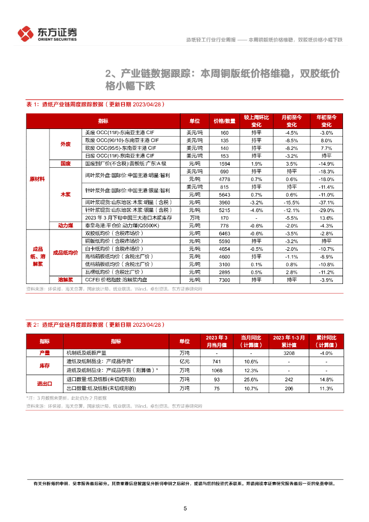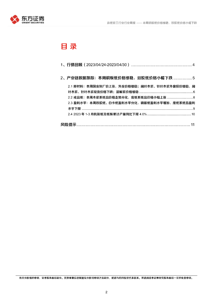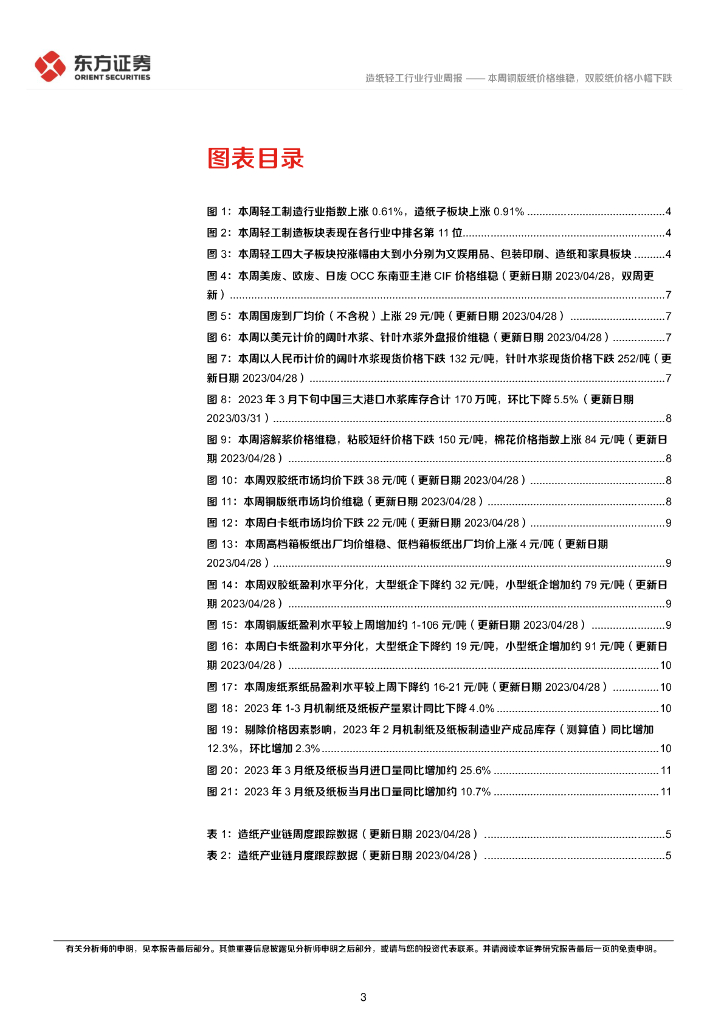 东方证券:造纸产业链数据每周速递:本周铜版纸价格维稳,双胶纸价格小幅下跌.pdf