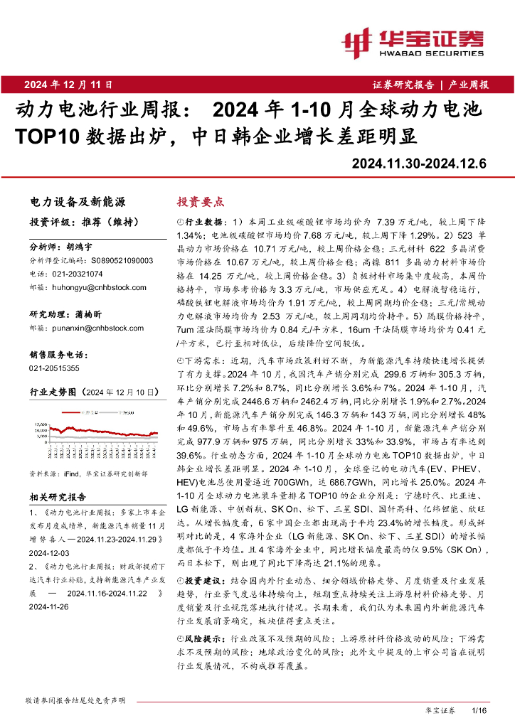 华宝证券:动力电池行业周报:2024年1-10月全球动力电池TOP10数据出炉,中日韩企业增长差距明显.pdf