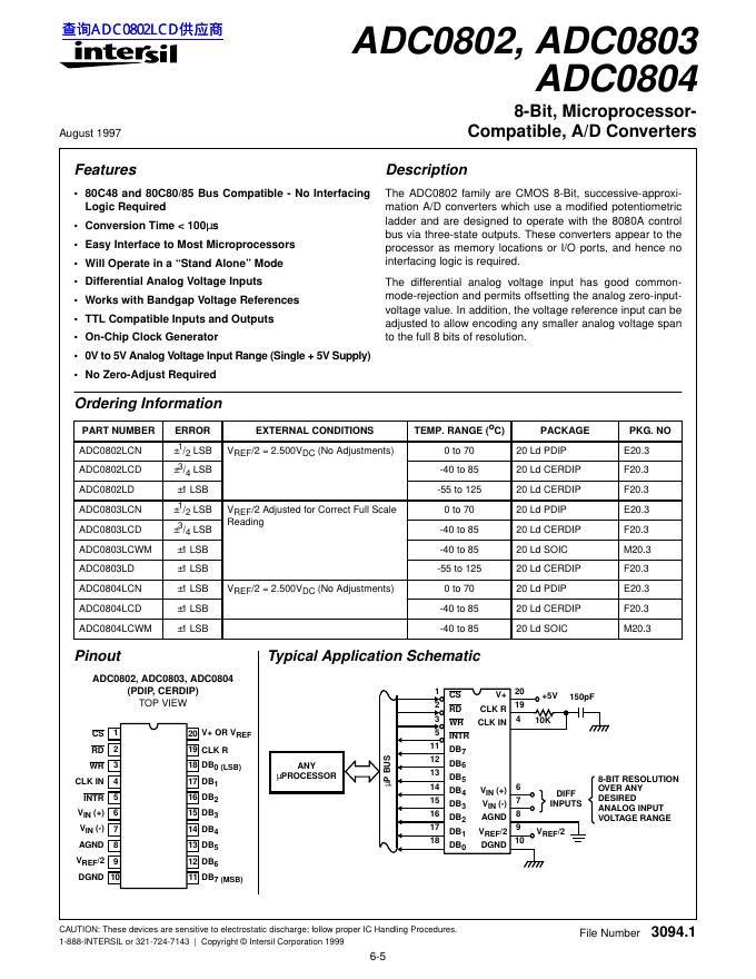 intersil ADC0802, ADC0803 ADC0804 数据手册.pdf