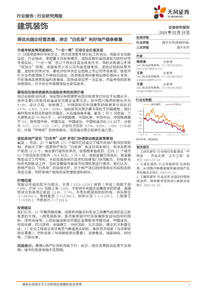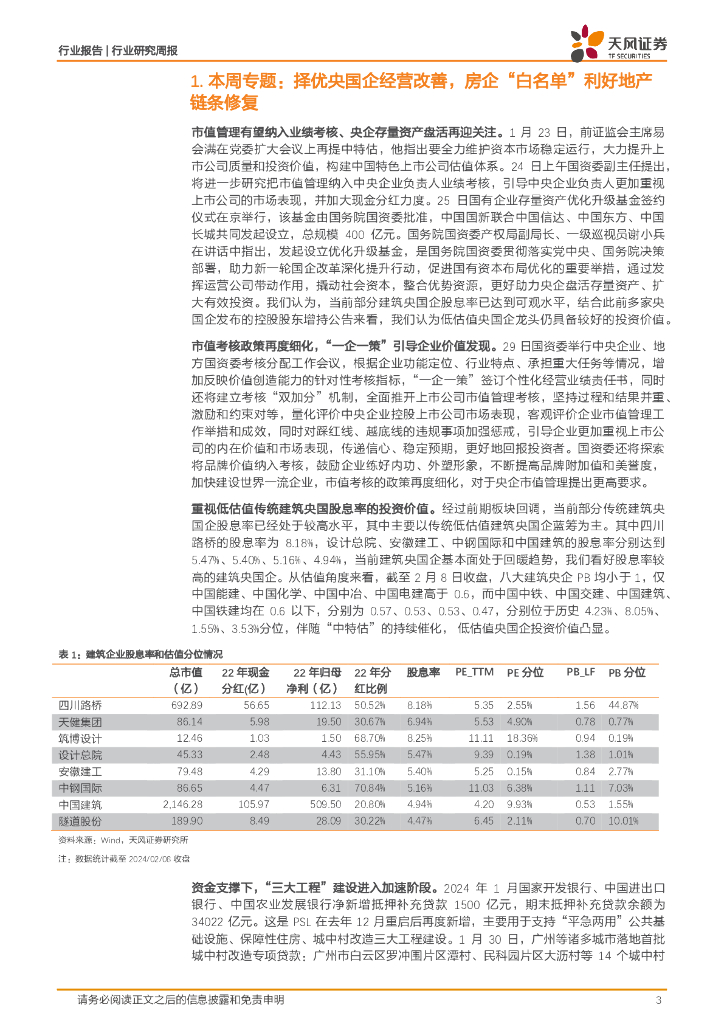 天风证券:建筑装饰行业周报:择优央国企经营改善,房企“白名单”利好地产链条修复.pdf