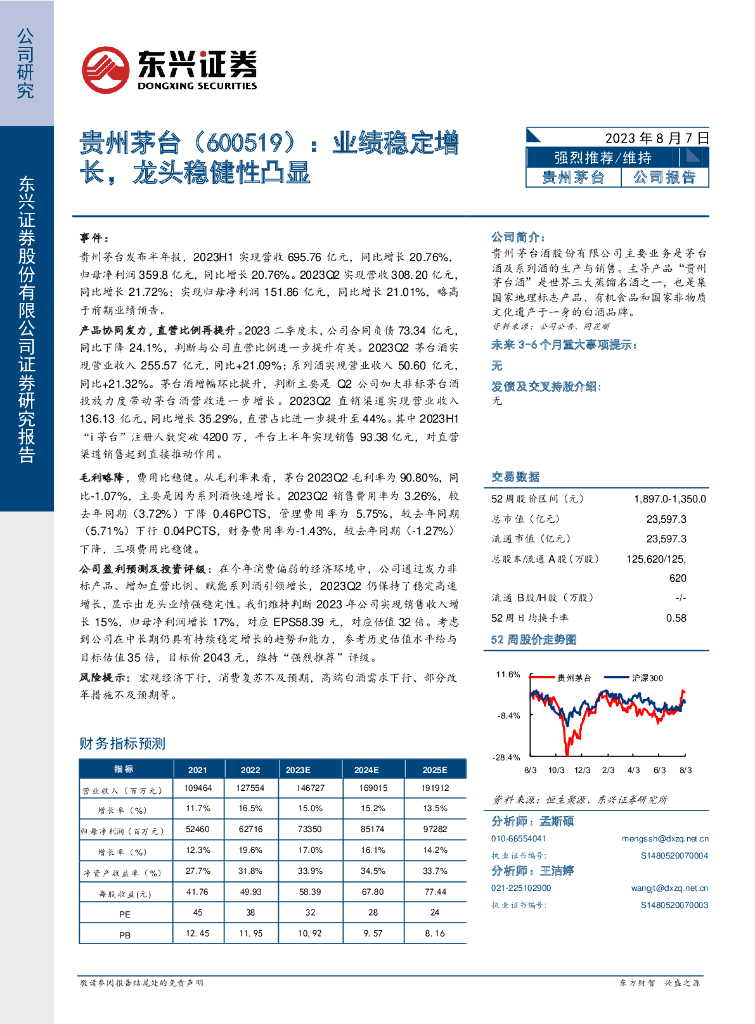 东兴证券:贵州茅台(600519)-业绩稳定增长,龙头稳健性凸显.pdf
