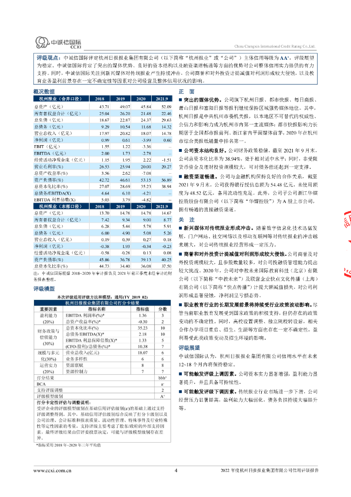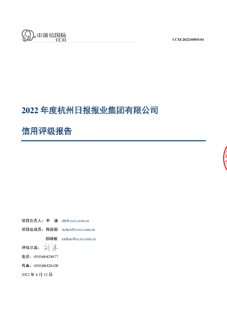 中诚信:2022年度杭州日报报业集团有限公司信用评级报告.pdf