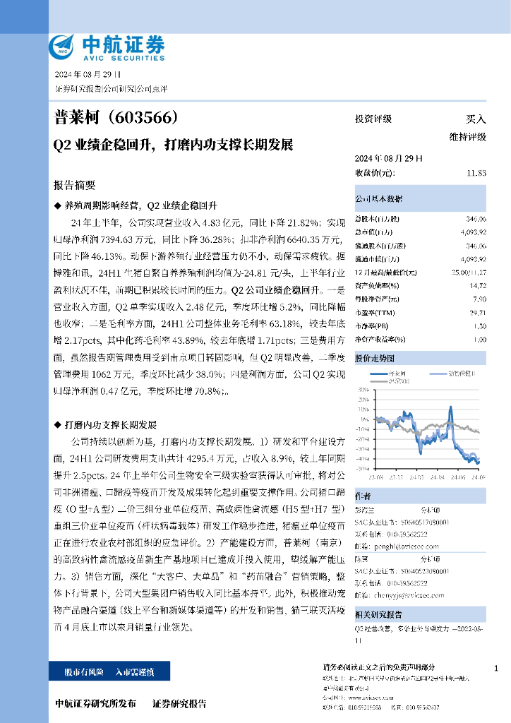 中航证券:普莱柯(603566)-Q2业绩企稳回升,打磨内功支撑长期发展.pdf