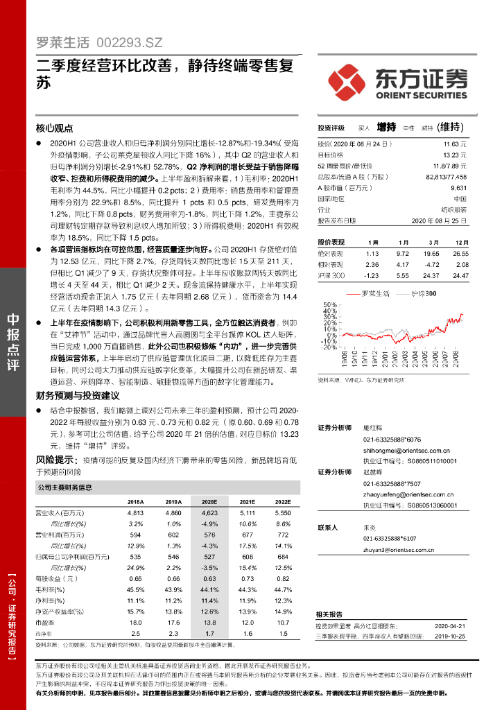 东方证券:罗莱生活(002293)-二季度经营环比改善,静待终端零售复苏.pdf