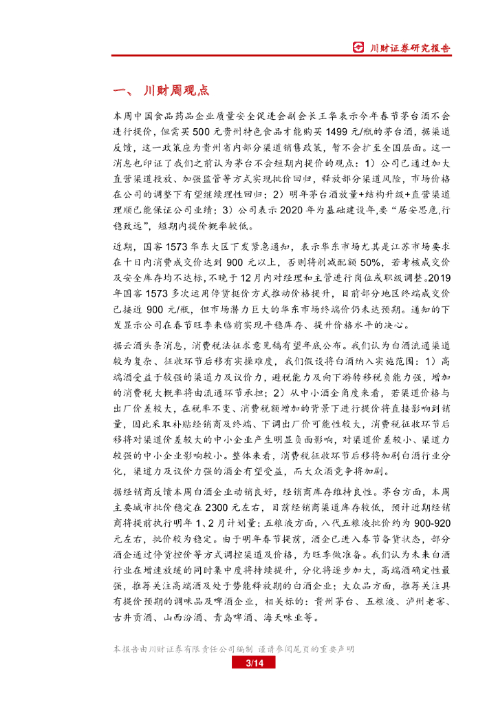 川财证券:食品饮料行业周报:茅台酒春节提价概率低,坚定看好高端酒机会.pdf
