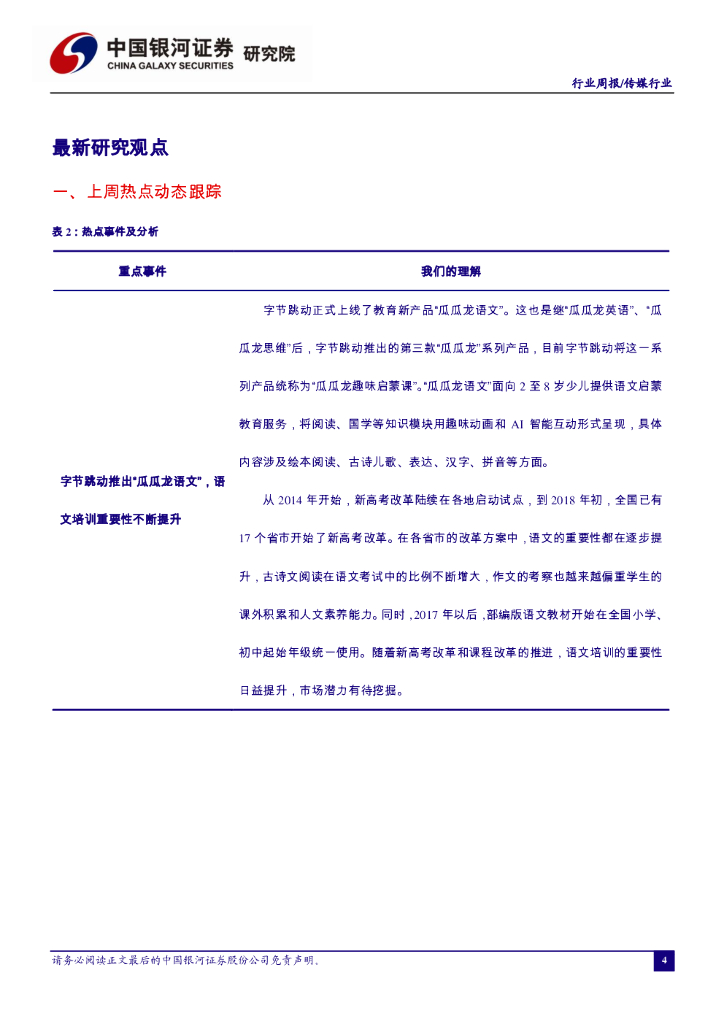 中国银河:教育行业周报:字节跳动推出“瓜瓜龙语文”,大语文培训市场潜力巨大.pdf