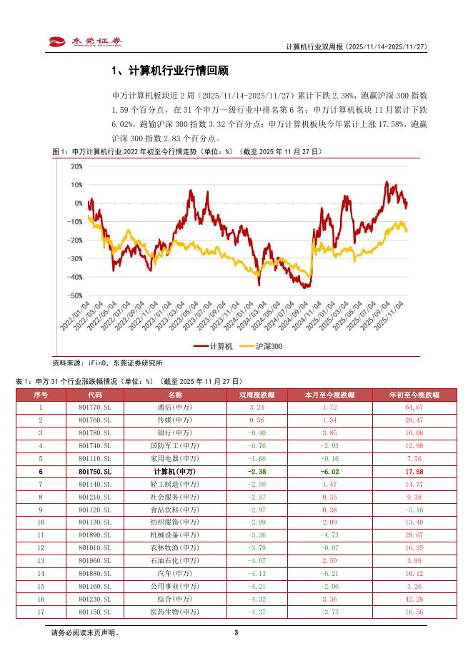 国金证券:计算机3Q25梳理:业绩改善,机构低配
