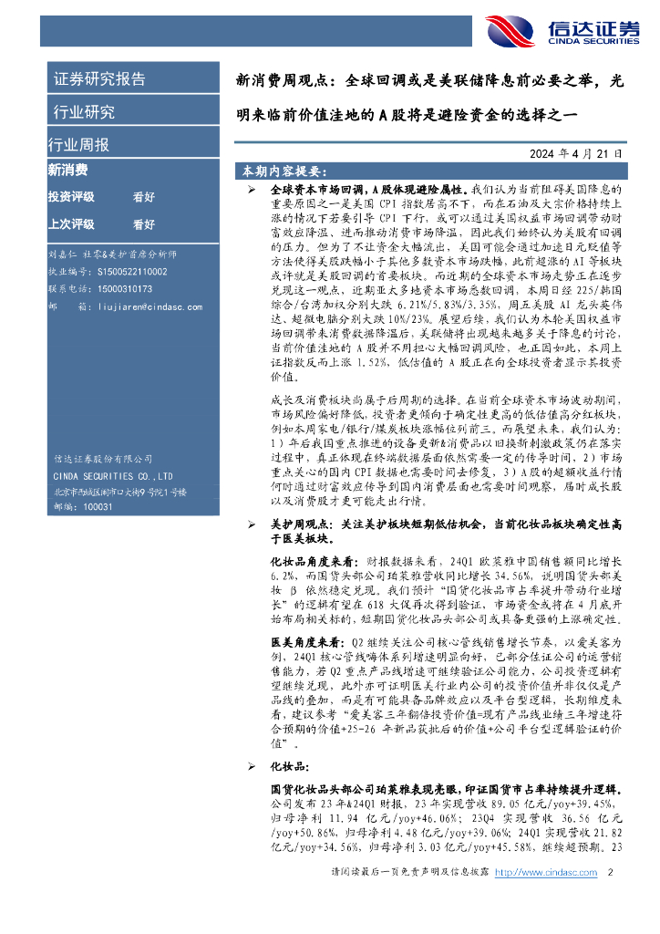 信达证券:新消费周观点:全球回调或是美联储降息前必要之举,光明来临前价值洼地的A股将是避险资金的选择之一.pdf