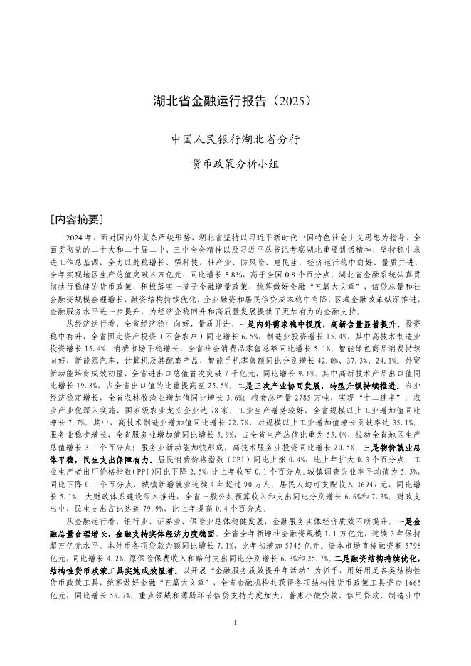 中国人民银行:湖北省金融运行报告(2025).pdf
