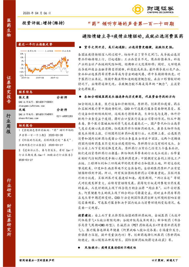 财通证券:“药”倾听市场的声音第一百一十四期:避险情绪主导+疫情业绩驱动,成就必选消费医药.pdf