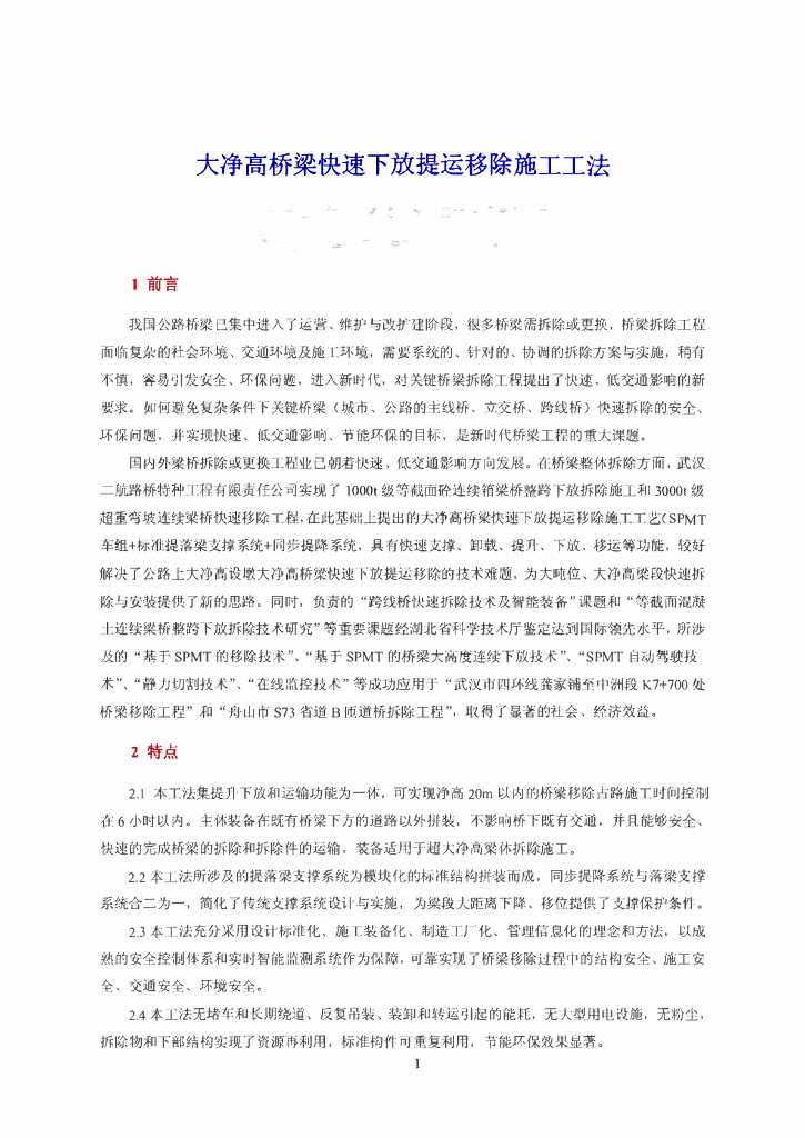 大净高桥梁快速下放提运移除施工工法25页.pdf