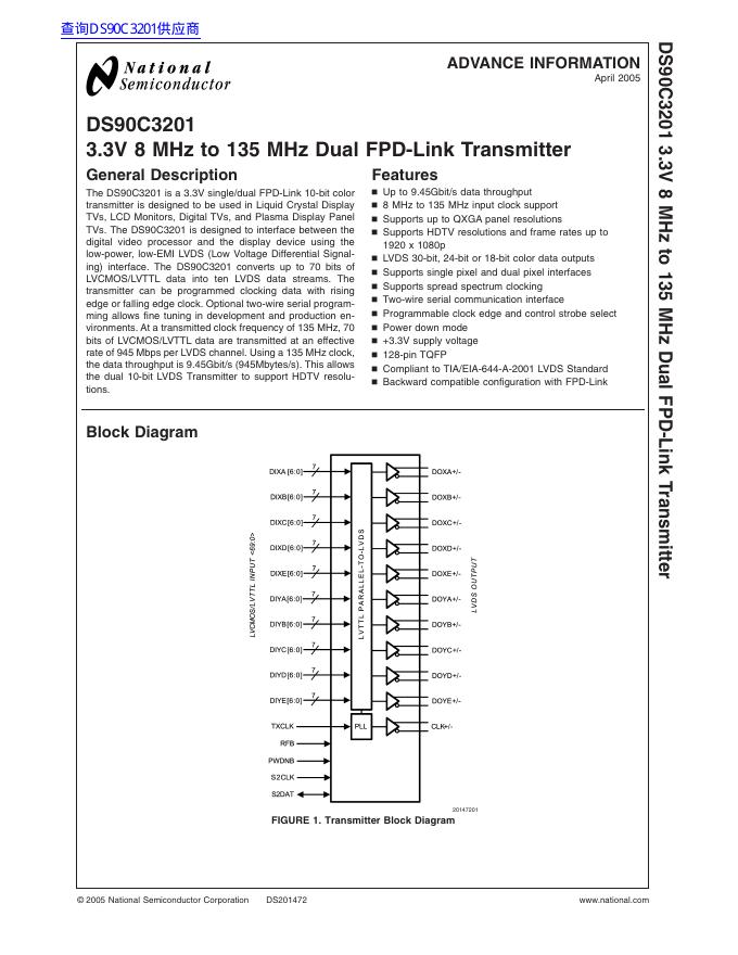 NATIONAL SEMICONDUCTOR - May 27, 2008 DS15BA101 1.5 Gbps Differential Buffer with Adjustable Output Voltage General 说明书