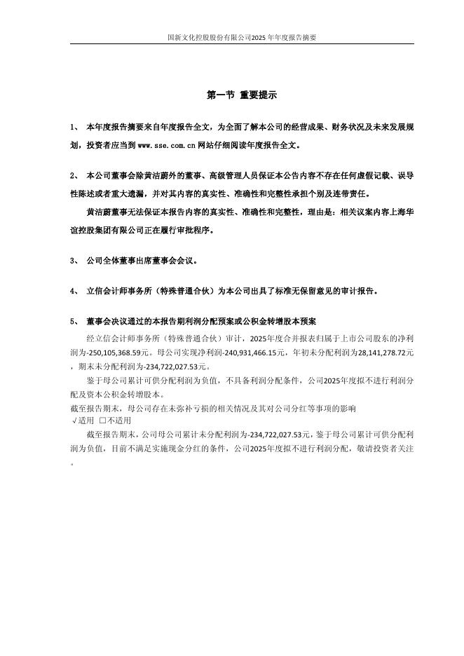 600636-*ST国化:国新文化控股股份有限公司2025年年度报告摘要.pdf