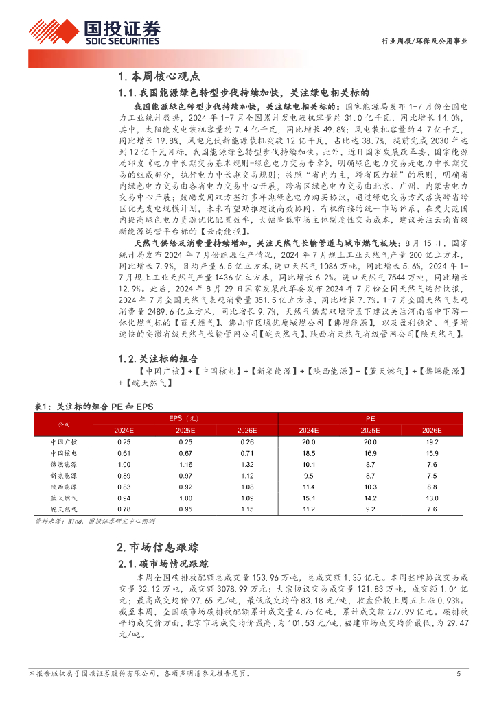 国投证券:环保及公用事业行业周报:我国能源绿色转型步伐持续加快,关注绿电相关标的.pdf