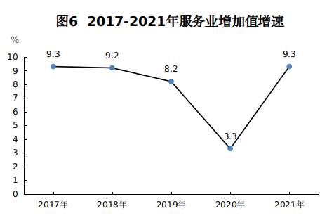 全年全市服务业实现增加值546.77亿元,比上年增长9.3%。其中,批发零售业增加值156.98亿元,增长11.3%;交通运输、仓储和邮政业增加值42.88亿元,增长20.6%;住宿和餐饮业增加值16.52亿元,增长20.0%;金融业增加值57.12亿元,增长7.3%;房地产业增加值43.09亿元,增长6.1%;其他服务业增加值223.56亿元,增长6.6%。