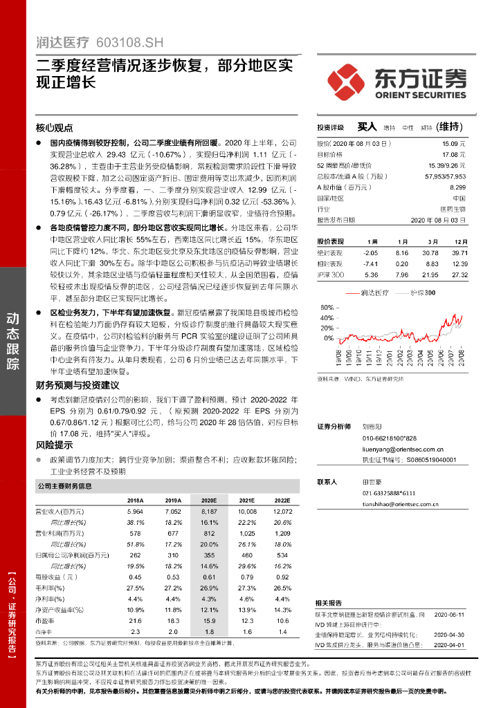 东方证券:润达医疗(603108)-二季度经营情况逐步恢复,部分地区实现正增长.pdf