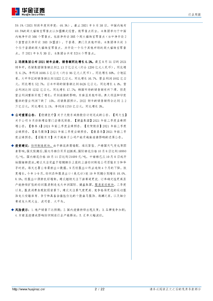 华金证券:纺织服装行业周报:9月纺服出口保持良好增势,周大福FY22Q2持续高增长.pdf