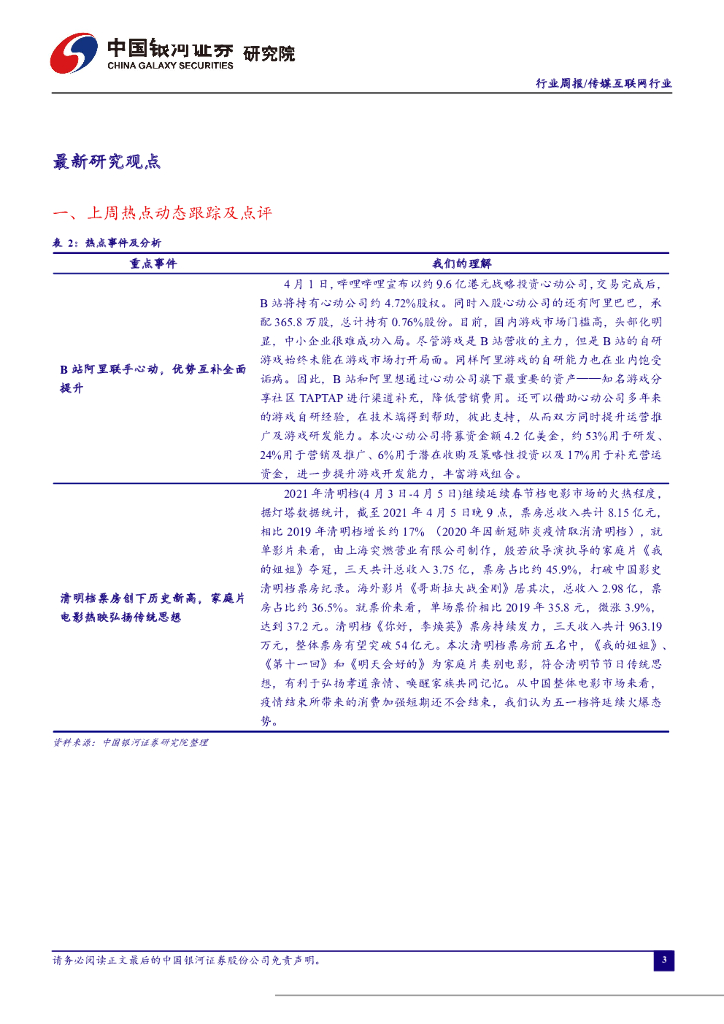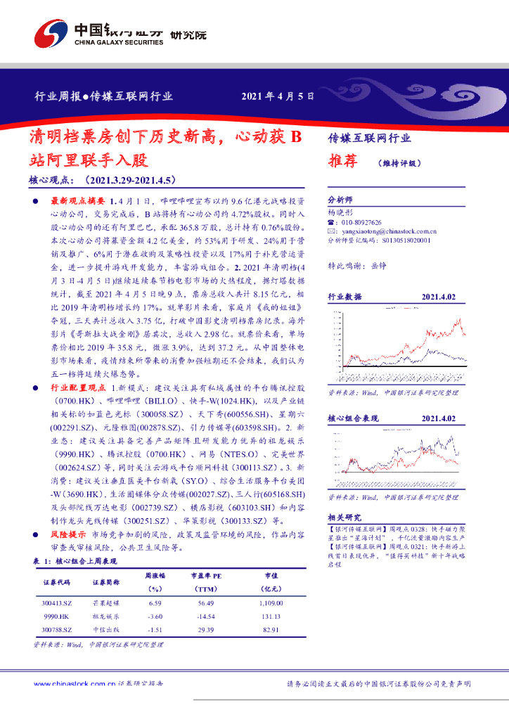 中国银河:传媒互联网行业:清明档票房创下历史新高,心动获B站阿里联手入股.pdf