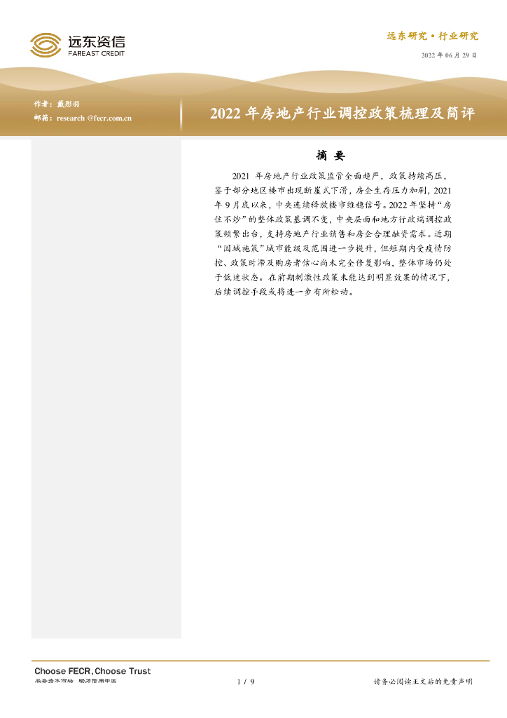 远东资信:2022年房地产行业调控政策梳理及简评报告.pdf