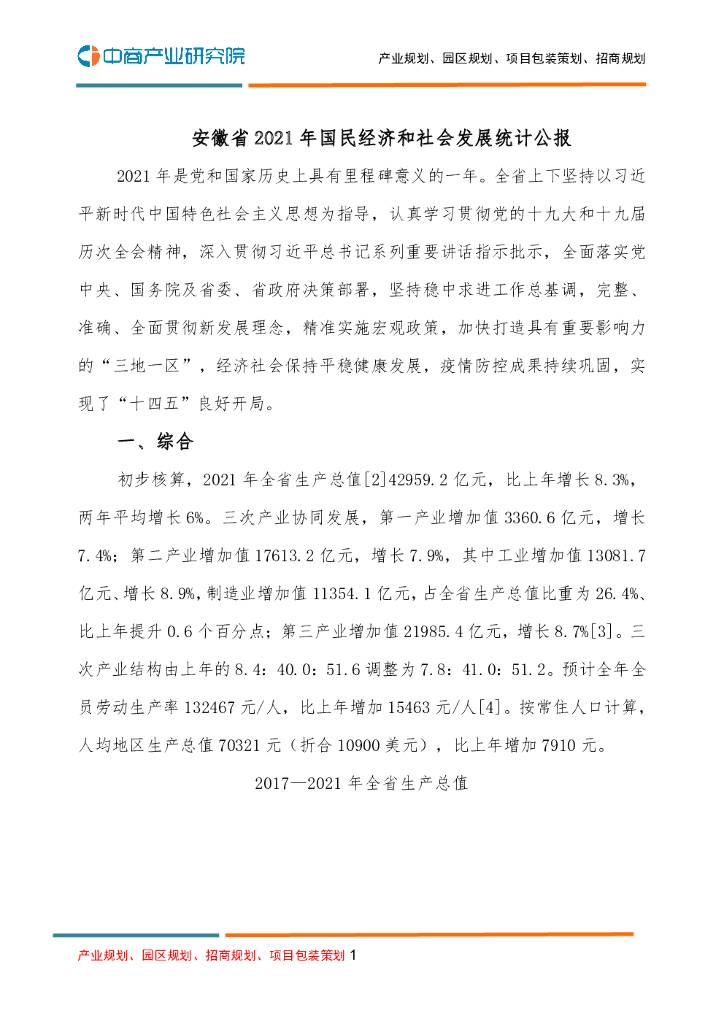 2021年安徽省国民经济和社会发展统计公报.pdf