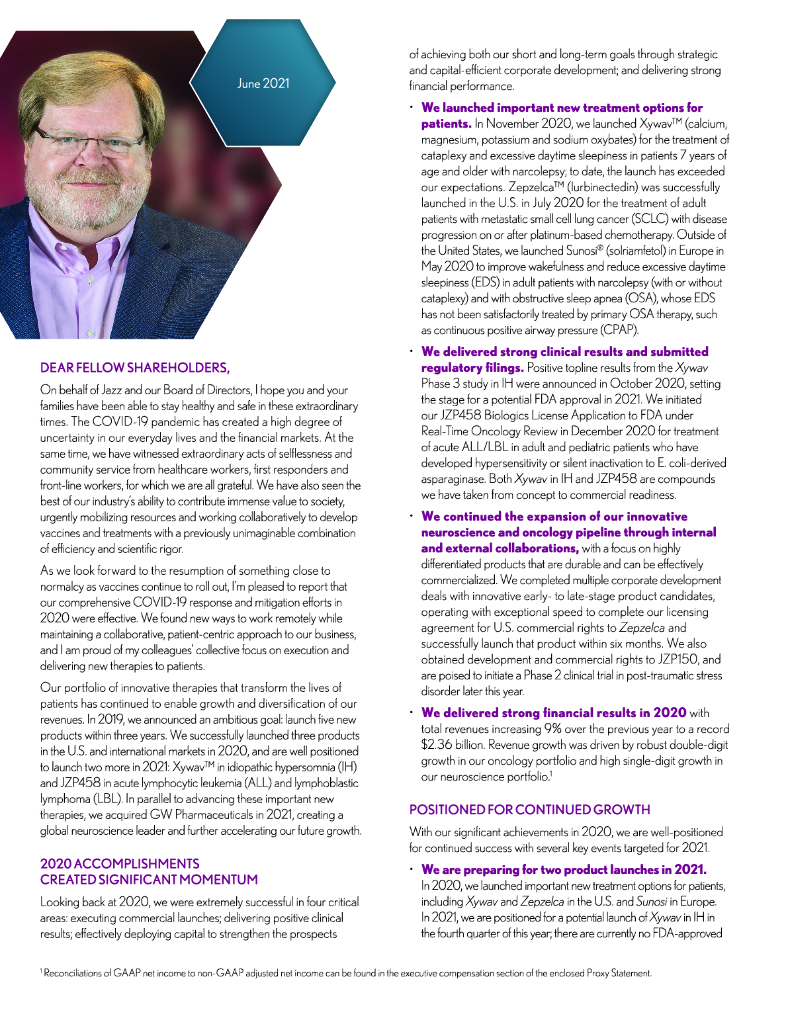 Jazz Pharmaceuticals, Inc.(JAZZ)2020财年年度报告(英文版).pdf