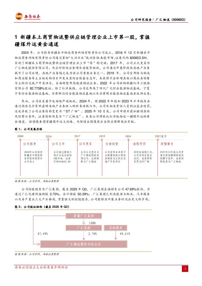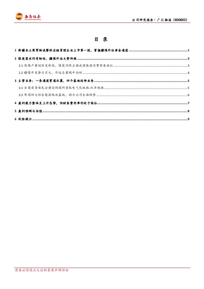 西南证券:广汇物流(600603)-疆煤外运领军企业,轻装上阵未来可期.pdf