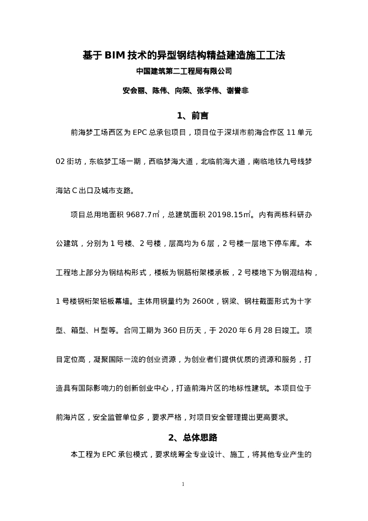 QHGF-2022184 基于BIM技术的异型钢结构精益建造施工工法.doc