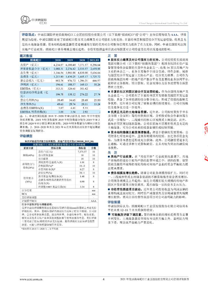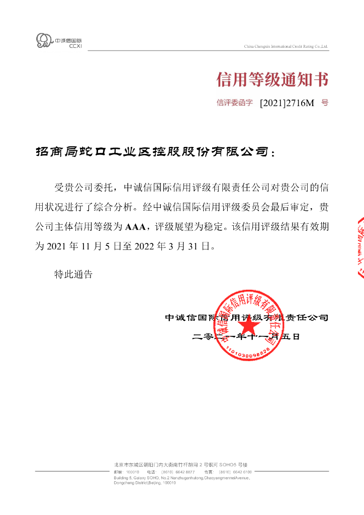 中诚信:招商局蛇口工业区控股股份有限公司2021年信用评级报告.pdf