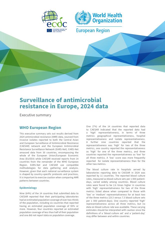 欧洲疾控中心:欧洲抗菌素耐药性监测,2024年数据执行报告摘要(英文版).pdf