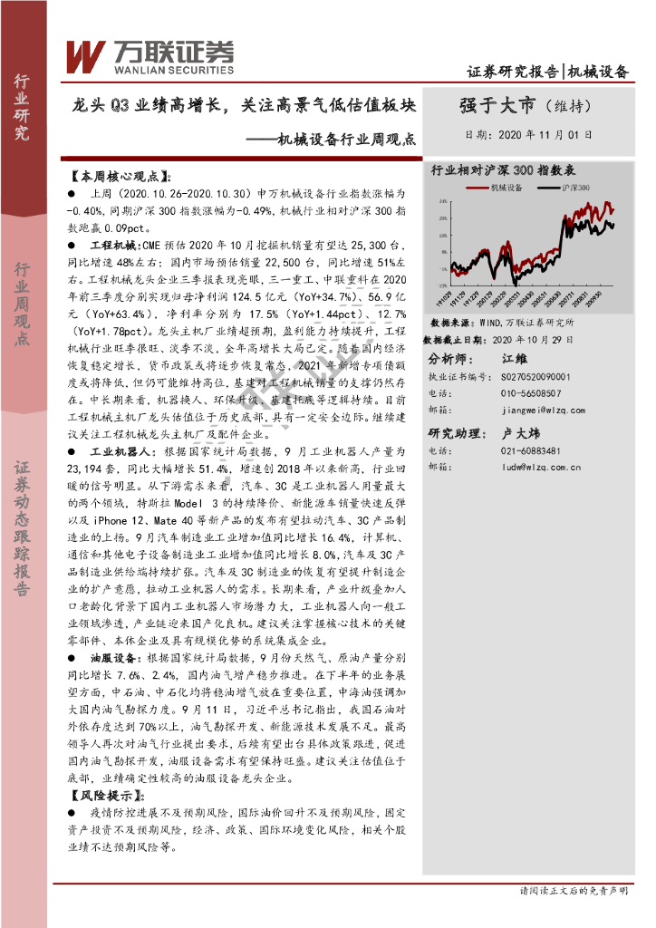 万联证券:机械设备行业周观点:龙头Q3业绩高增长,关注高景气低估值板块.pdf