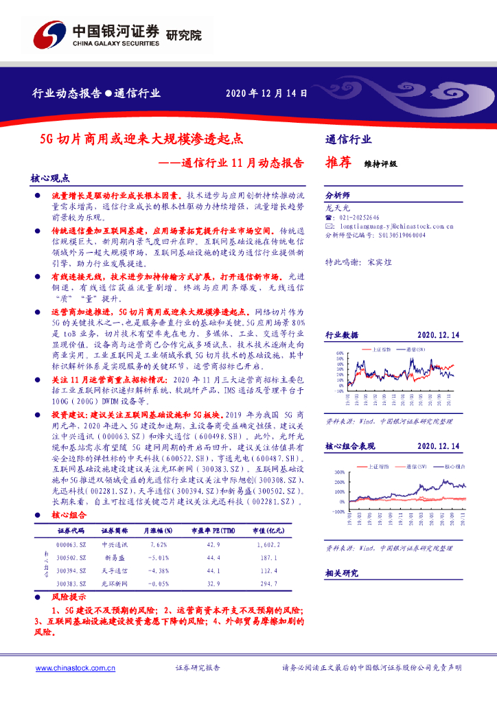 中国银河:通信行业11月动态报告:5G切片商用或迎来大规模渗透起点.pdf