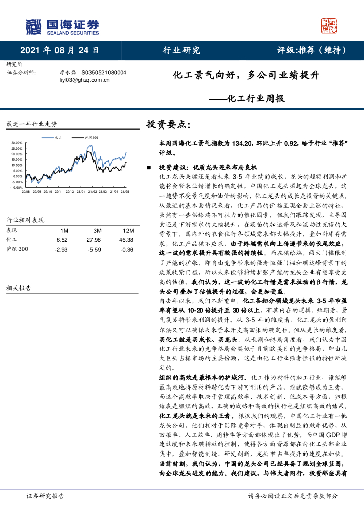国海证券:化工行业周报:化工景气向好,多公司业绩提升.pdf