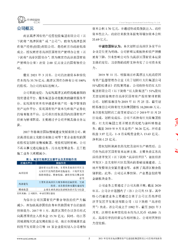 中诚信:南京高淳国有资产经营控股集团有限公司主体信用评级报告.pdf