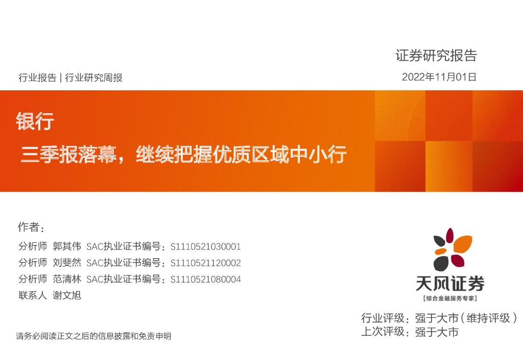 天风证券:银行:三季报落幕,继续把握优质区域中小行.pdf