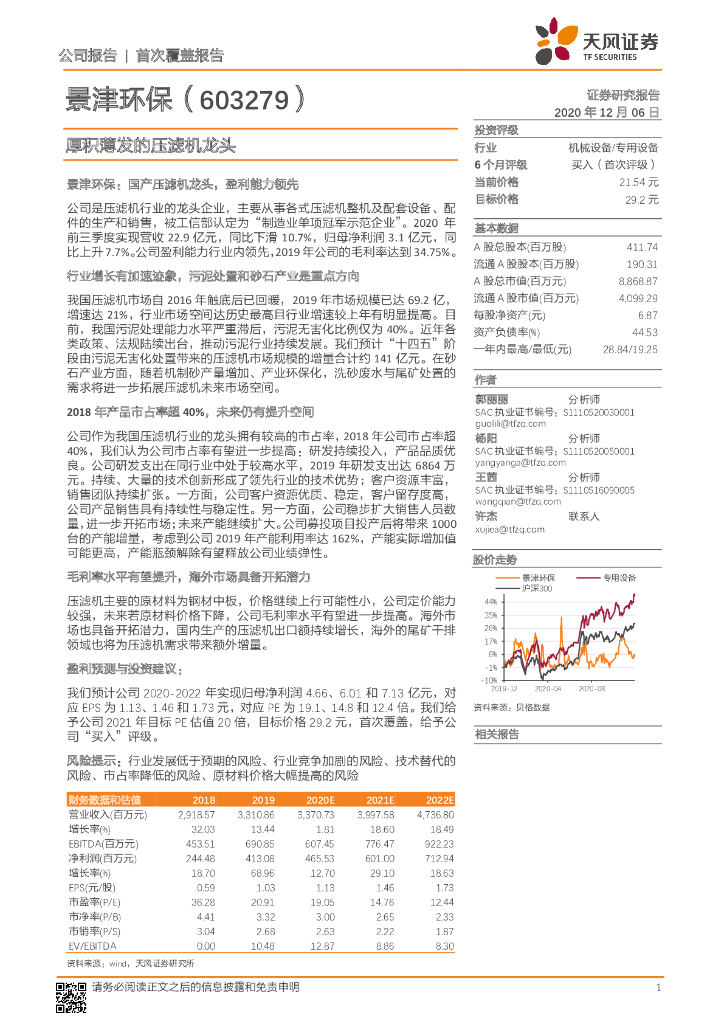 天风证券:景津环保(603279)-厚积薄发的压滤机龙头.pdf