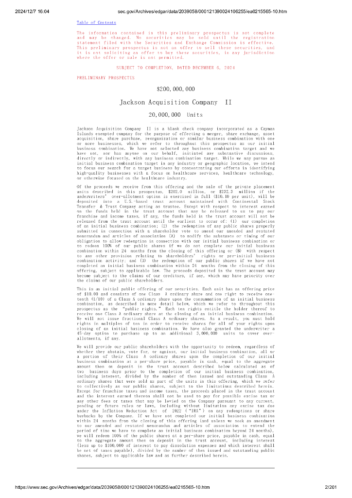Jackson Acquisition Company II美股纳斯达克IPO上市招股说明书.pdf