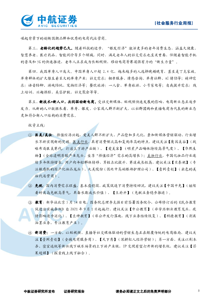 中航证券:社会服务行业周报:第七次全国人口普查数据发布,建议关注悦己、单身、银发经济等赛道.pdf