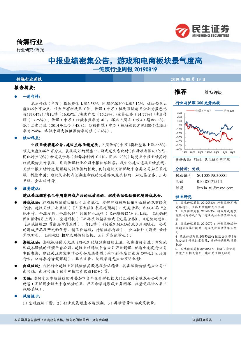 民生证券:传媒行业周报:中报业绩密集公告,游戏和电商板块景气度高.pdf