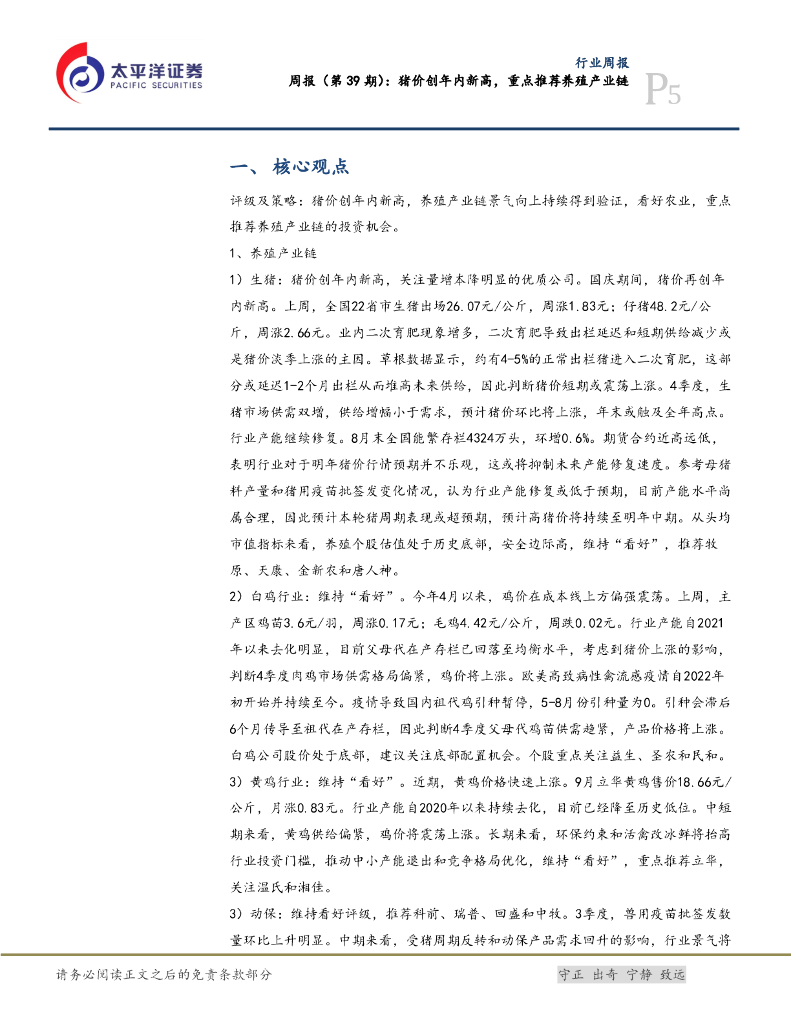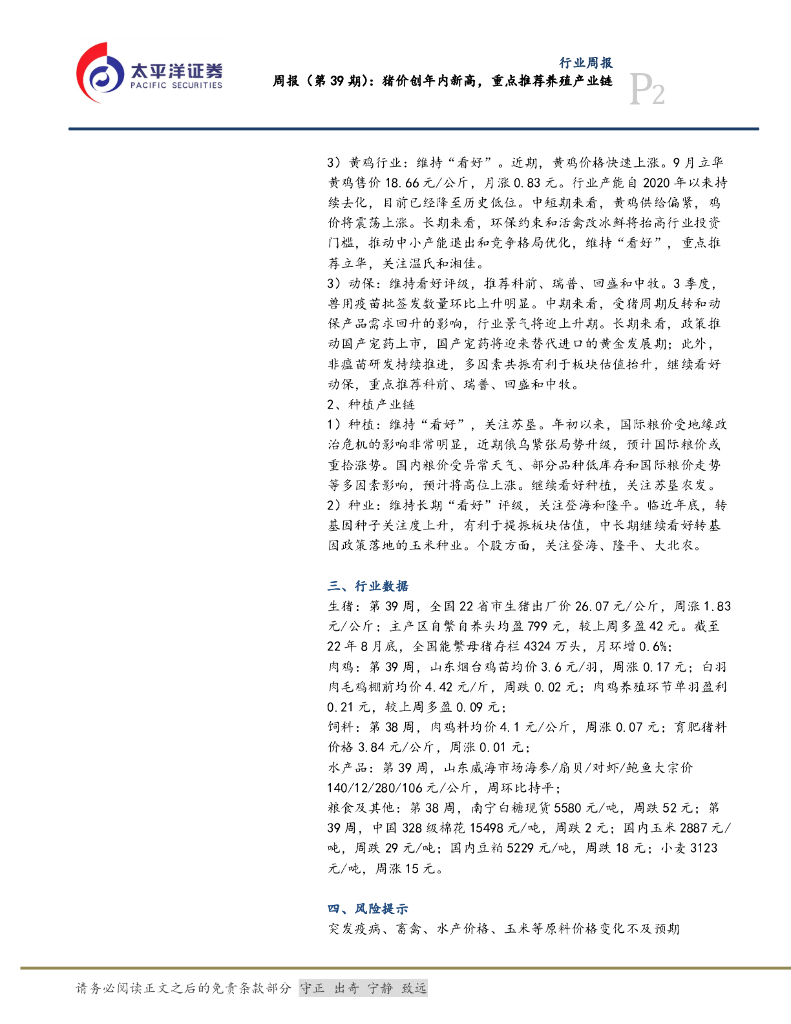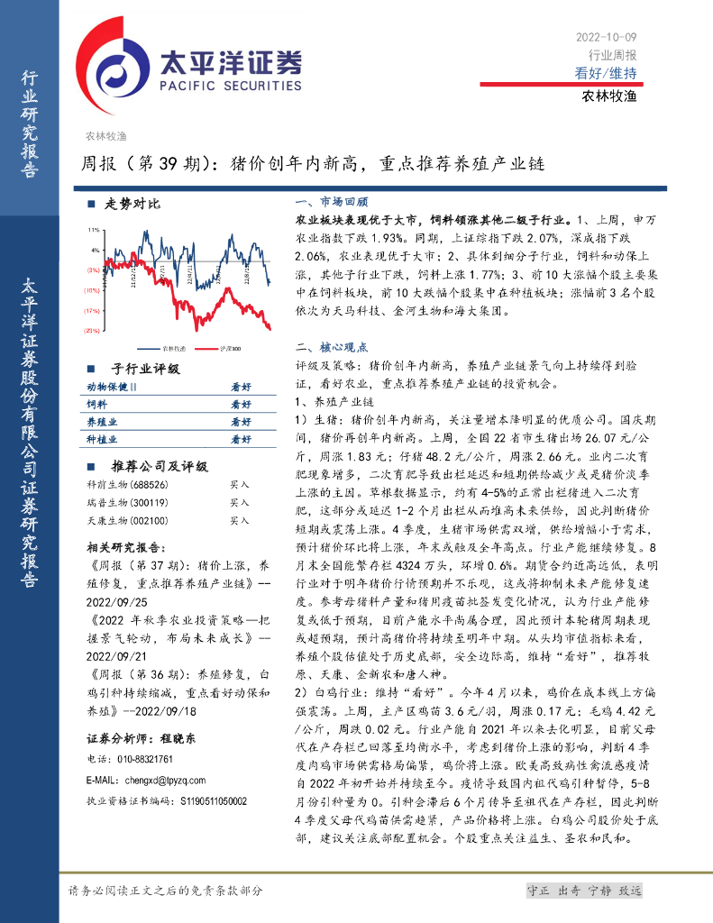 太平洋证券:农林牧渔周报(第39期):猪价创年内新高,重点推荐养殖产业链.pdf