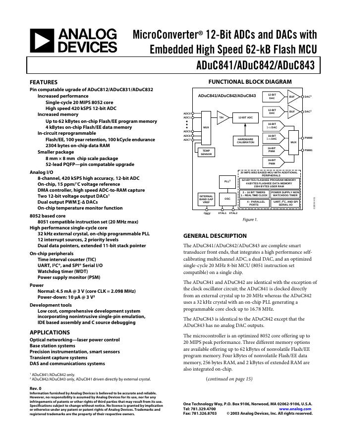ANALOG DEVICES ADUC841 英文产品 数据手册 Rev 0.pdf