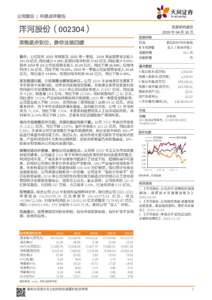 天风证券:洋河股份(002304)-调整逐步到位,静待业绩回暖.pdf