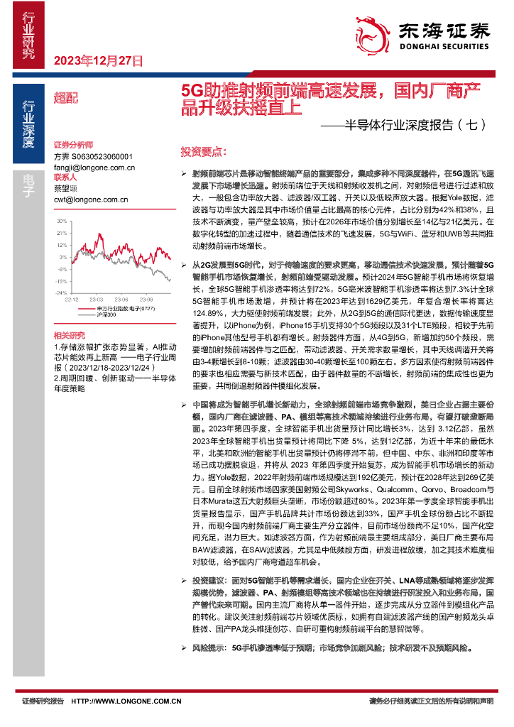 东海证券:半导体行业深度报告(七):5G助推射频前端高速发展,国内厂商产品升级扶摇直上.pdf