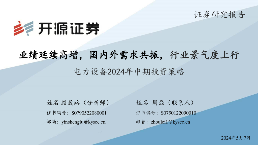 开源证券:电力设备2024年中期投资策略:业绩延续高增,国内外需求共振,行业景气度上行.pdf