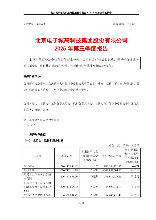600658-电子城:电子城2025年第三季度报告.pdf