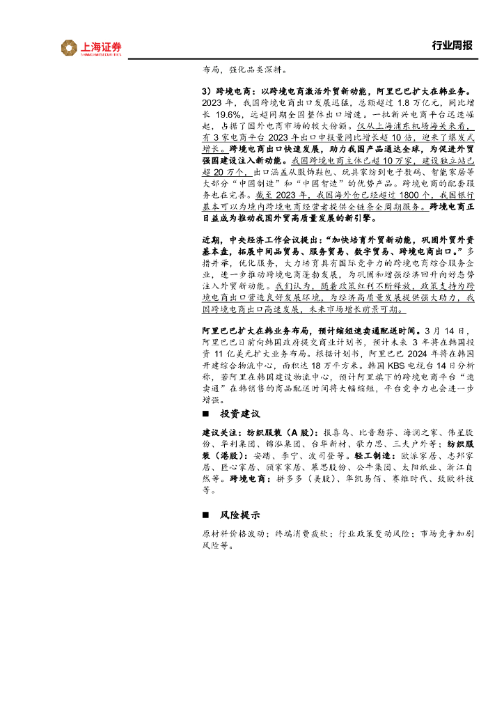 上海证券:纺织服饰行业周报:纺服出口补库逐步验证,关注纺织制造板块业绩超预期.pdf